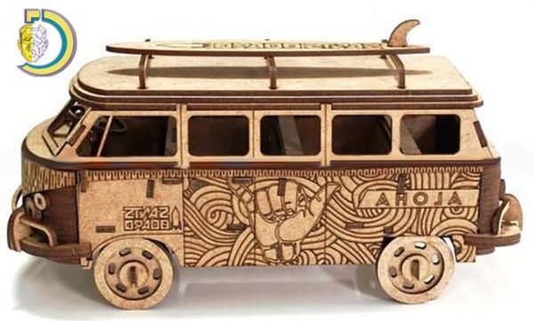 Laser Cut Volkswagen Bus with Surfboard
