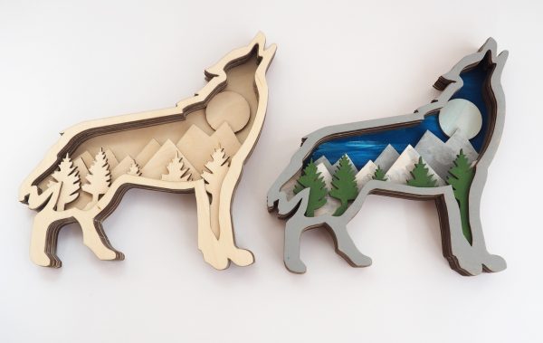 Laser cut wooden Decorative multi-layer wolf panels free vector